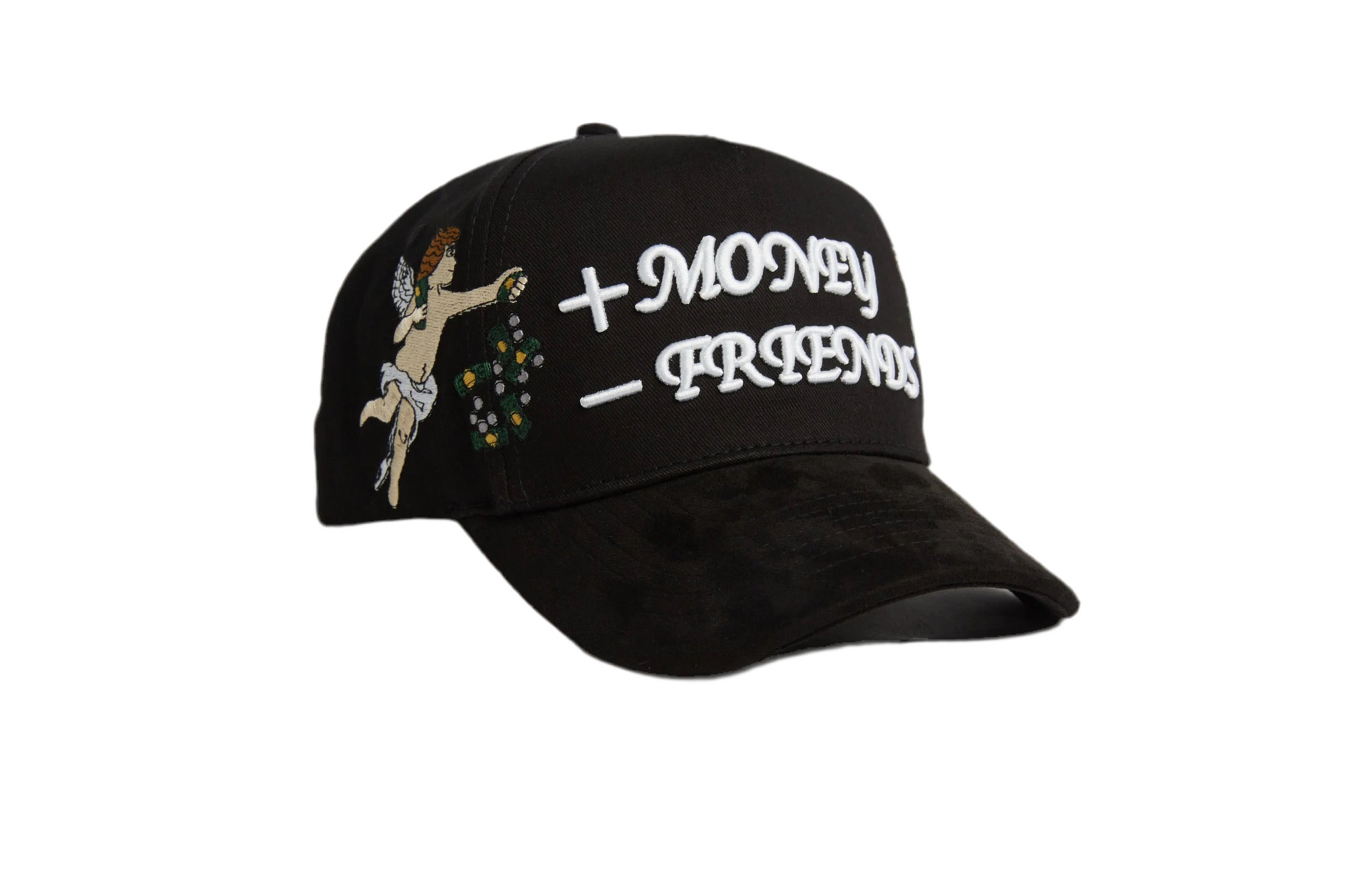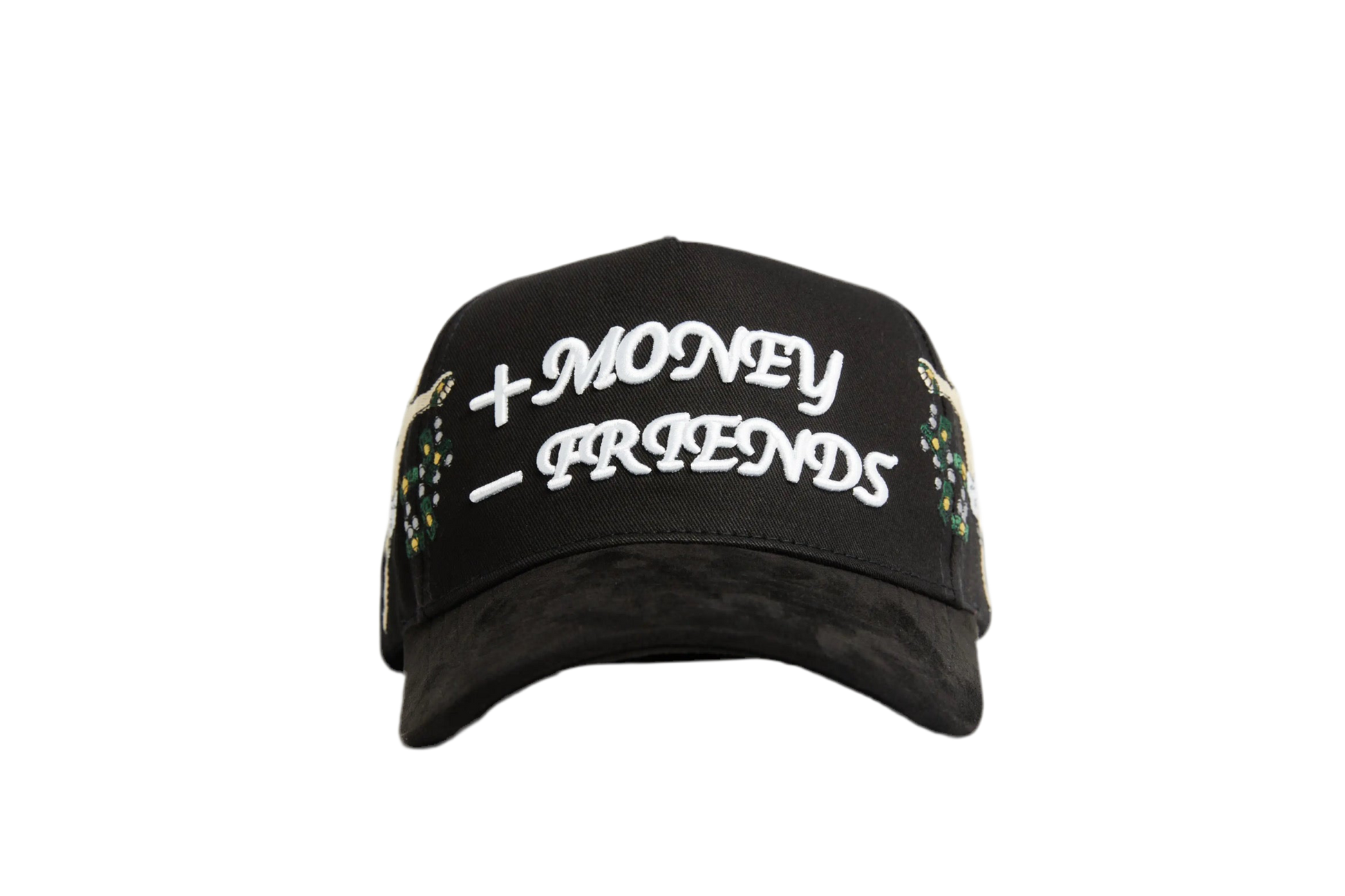 Indulge in the exclusive limited edition + Money - Friends hat, uniquely crafted with a cotton crown and suede brim. Each purchase comes with a custom box, hanging tags, and a certificate of authentication for added value. Elevate your style and quality with this high-quality, one-of-a-kind hat.